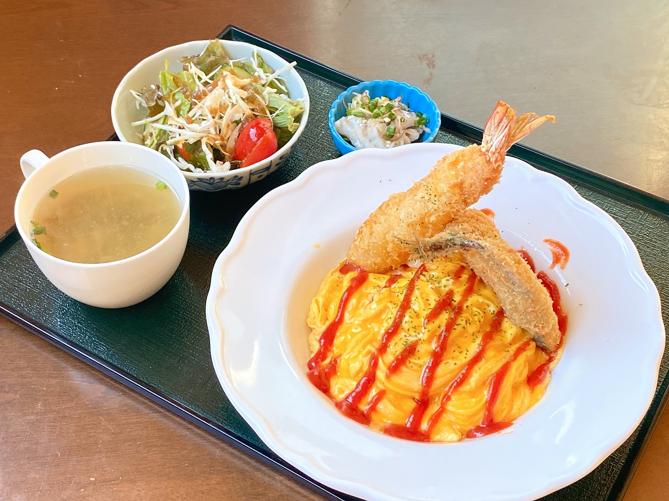 ランチでは、オムライス、ハントンライス、ハンバーグ定食、ステーキ定食、ロースとんかつ、カレーなど、ボリューム満点の洋食メニューが楽しめます。ディナーは予約制で、能登食材を活かした本格料理とお酒をゆったり味わえます。