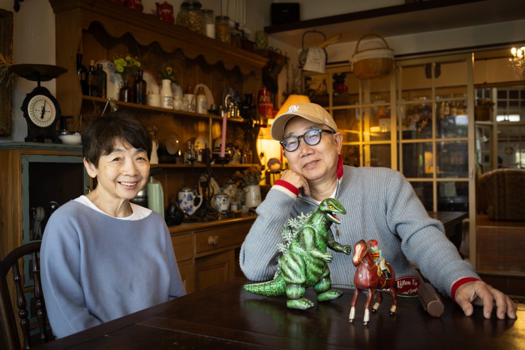 クルーズの自慢は、アンティークを愛する信司さんが集めたこだわりのインテリアだ。扉を開けると、フランスの片田舎に迷い込んだような空間が広がる。