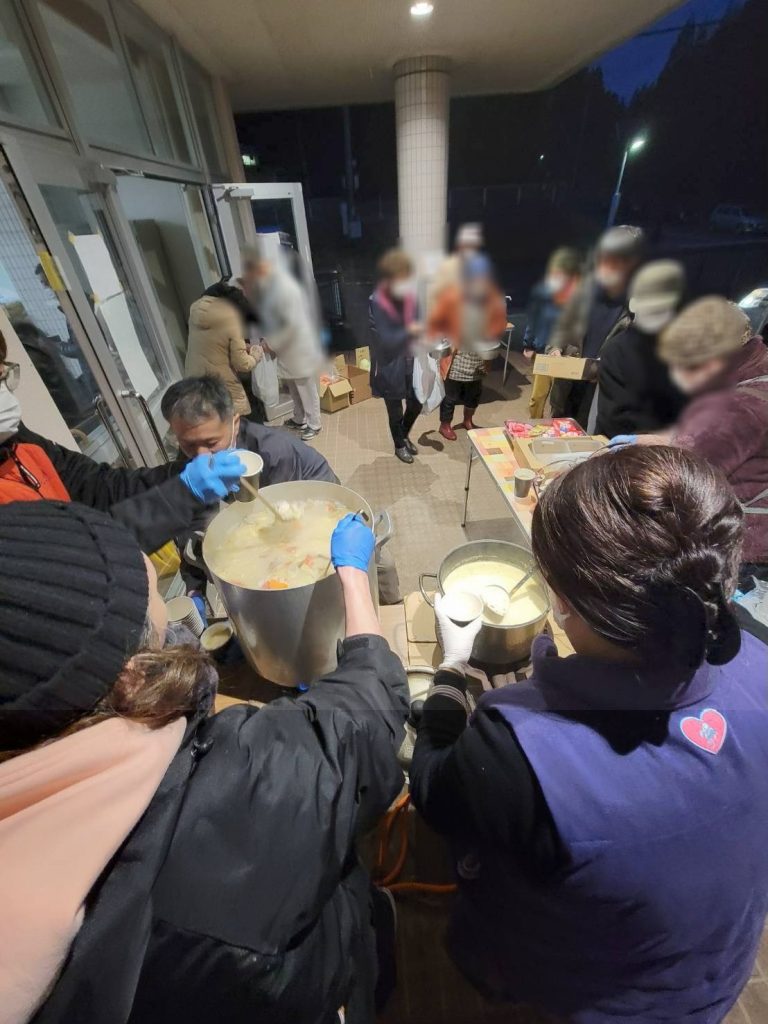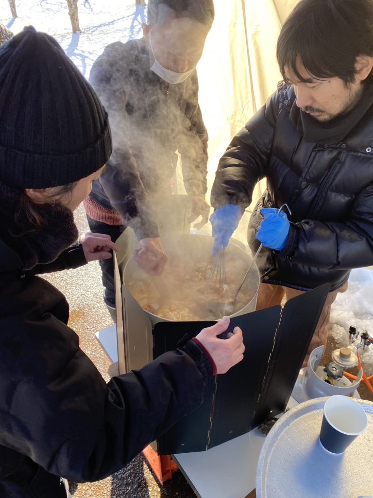 晋一郎さんは飲食店の仲間らと、炊き出しのボランティアをした。