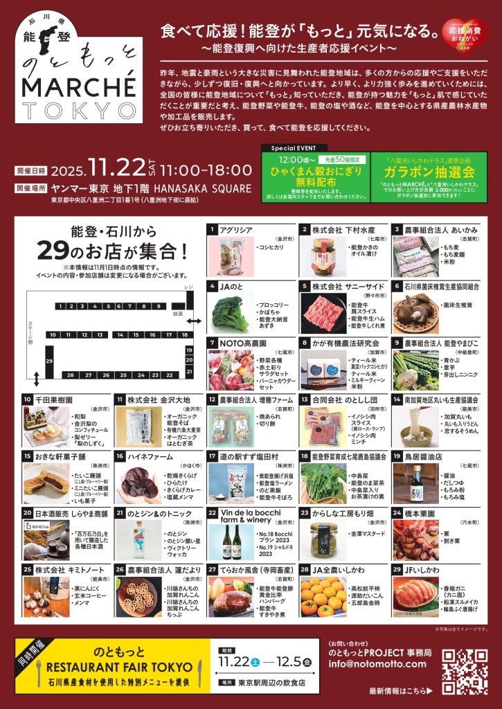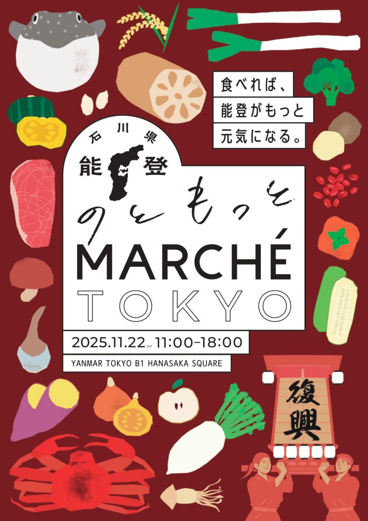 能登地域の復興を応援するイベント「のともっとMARCHE TOKYO」が、11月22日(土)に東京・八重洲のYANMAR TOKYO 地下1階 HANASAKA SQUAREで開催されます。