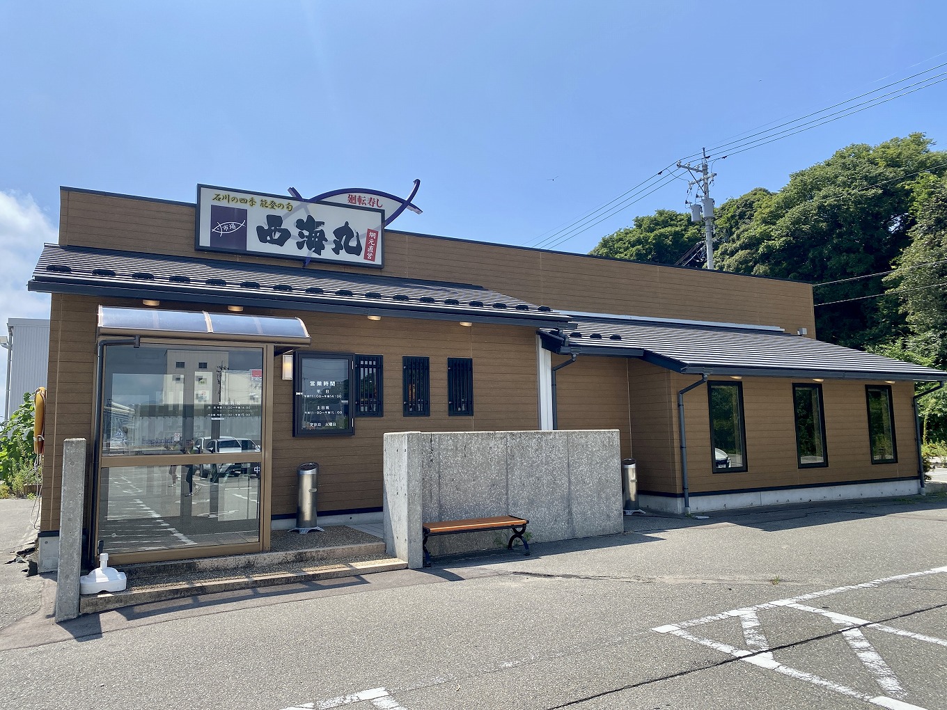 その富来漁港のすぐそばにあるのが、網元直営の回転寿し「西海丸」。ここでは、漁港で水揚げされたばかりの魚を使った寿司を、リーズナブルに楽しめます。ネタは肉厚で鮮度抜群。能登寒ぶり、甘えび、のどぐろ、赤イカなど、地元ならではの旬の味覚が並びます。米は能登産コシヒカリ、酢は白山麓の水を使った米酢、醤油は志賀町のカネヨ醤油と、細部まで能登の素材にこだわった一皿は、まさに「能登の味」そのもの。