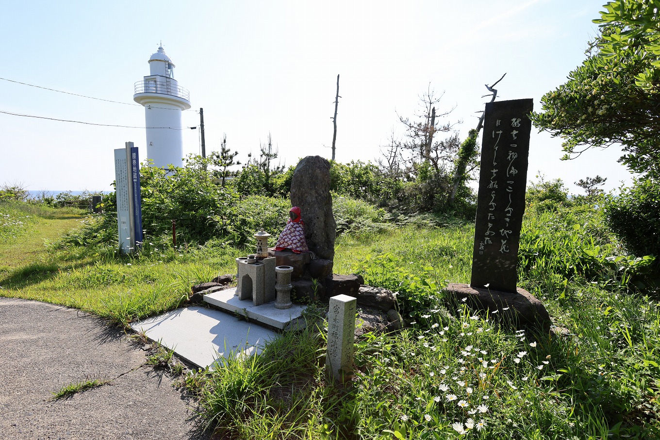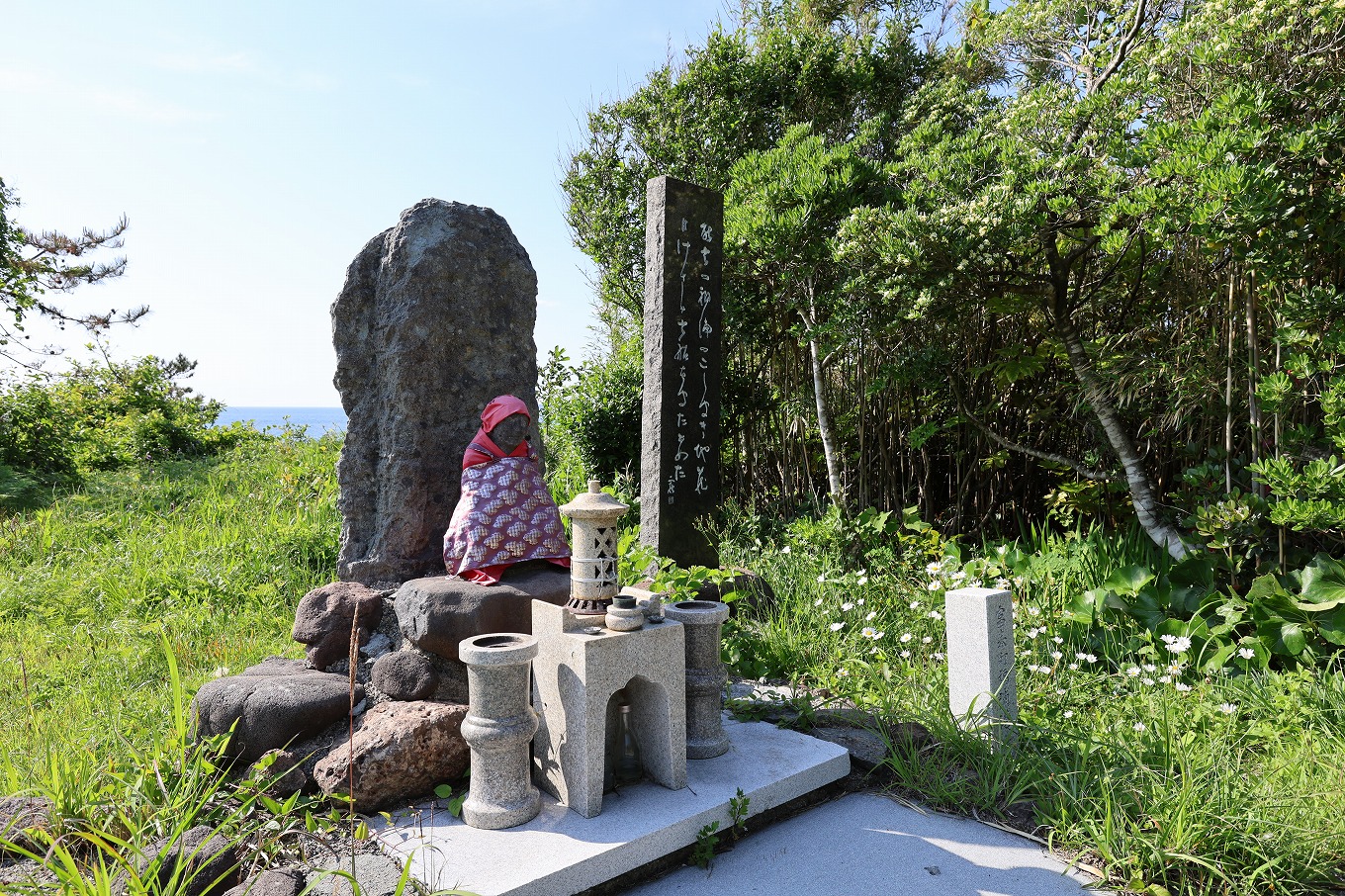 この地を訪れた詩人・野口雨情も「能登の福浦の腰巻地蔵は、けさも出船をまた止めた」という歌を詠み、その歌碑が地蔵のそばに寄り添っています。